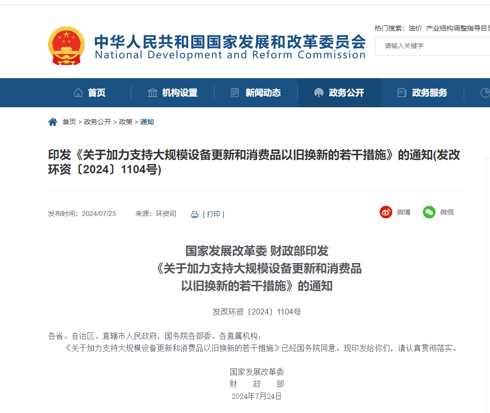 為全面貫徹黨的二十大和二十屆二中、三中全會(huì)精神,認(rèn)真落實(shí)黨中央、國(guó)務(wù)院決策部署,根據(jù)《推動(dòng)大規(guī)模設(shè)備更新和消費(fèi)品以舊換新行動(dòng)方案》(國(guó)發(fā)〔2024〕7 號(hào)),現(xiàn)就統(tǒng)籌安排3000億元左右超長(zhǎng)期特別國(guó)債資金,加力支持大規(guī)模設(shè)備更新和消費(fèi)品以舊換新,提出如下措施。